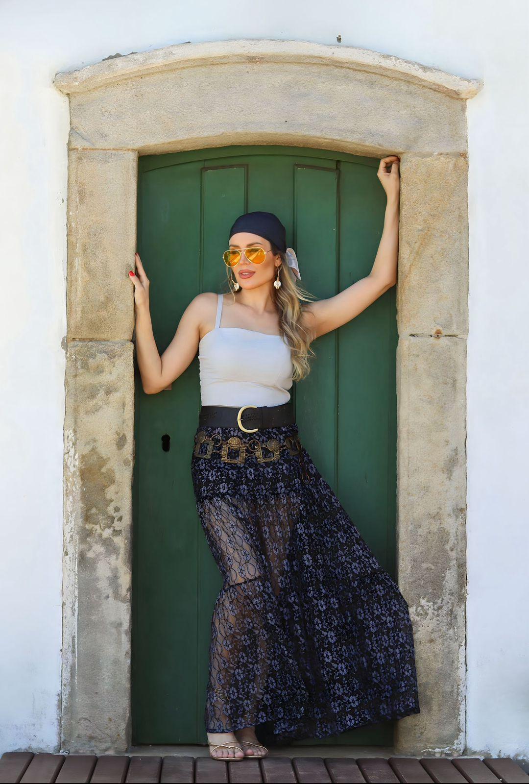 Saia de tafetá com bolso